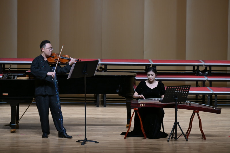很荣幸能与各位老师同学在校新音乐厅相聚,参演本次的音乐会。我想这也是一次意义非凡的音乐会,我将我的爱国情怀融入古筝的旋律之中,让我深切感受到了祖国的伟大与辉煌。这场音乐会不仅是一次艺术的盛宴,更是一堂生动的爱国主题课,激发了我对祖国的无限热爱。