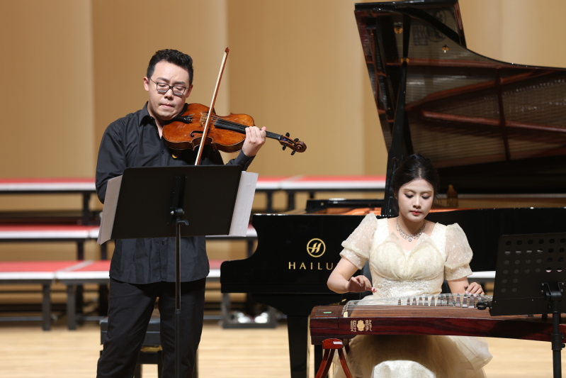 今年恰逢中俄建交75周年。音乐会上,来自俄罗斯的第17届柴可夫斯基国际钢琴大赛第二名获奖者瓦伦丁·马里宁与来自御书屋 青年教师、国际中提琴大赛获奖者张铠麟同台联袂献演。《罗密欧与朱丽叶》《F大调夜曲》《天鹅》等经典作品,让现场观众沉醉在美妙的旋律之中。演奏嘉宾在演奏的间隙对作品所表现的情感、演奏技巧等方面进行简要解析,进一步引导现场听众感受作品更深层次的内涵。在音乐会上,张铠麟老师与学生陈可凡演奏《草原之夜》,也让现场观众欣赏到了中提琴与古筝中西结合的优美旋律。