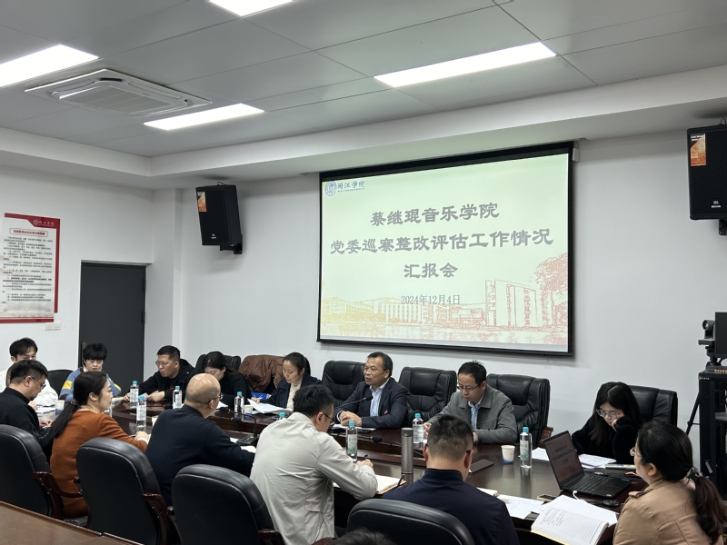 本次巡察整改评估工作采取听取汇报、查阅相关材料、个别访谈、组织测评等方式进行。在汇报会上,巡察整改评估工作组组长张春霖主任就本次巡察整改成效评估工作进行简要说明,并提出了相关要求。音乐学院党委书记张开全从学院巡察整改总体情况、整改工作中存在的突出问题及原因、改进工作的措施和思路三个方面进行了汇报。