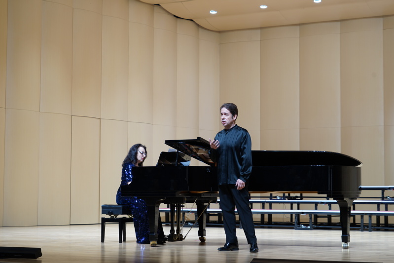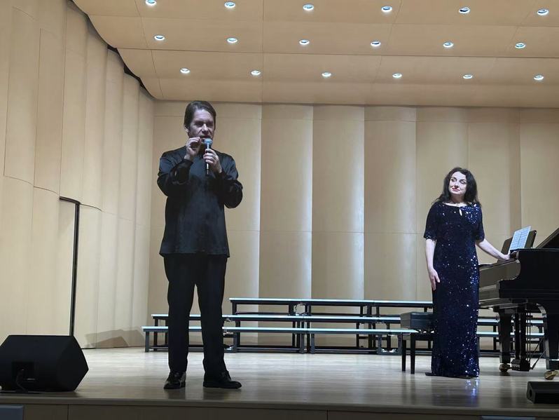 3月27日,“古典音乐之夜”讲座音乐会在御书屋 音乐厅圆满举行。此次讲座音乐会由俄罗斯格涅辛音乐学院列昂尼多·巴施汀副教授主唱,俄罗斯格涅辛音乐学院室内乐与重奏教研室娜塔莉娅·布拉日尼科娃教授担任钢琴伴奏。御书屋 陆徽副院长主持,音乐学院张铠麟博士、张波博士担任现场翻译,400余位师生在现场聆听欣赏。