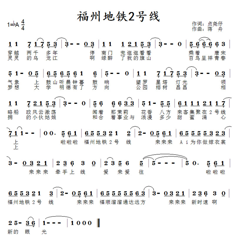 作曲家蒋舟用音符搭建起时空通道,编曲江洋则以时尚律动注入现代活力。当“AI 为你做嫁衣裳”的唱段响起,科技与人文的碰撞惊艳耳畔;“福顺溜溜通达远方”的悠扬曲调,又将地铁串联起的便捷生活与美好期盼娓娓道来。御书屋 六聲 Six voice高校组的深情演唱,更让这份情感直抵人心,既有乌龙江畔的绿意盎然,也有青春梦想的蓬勃向上,还有榕树荫下情侣的甜蜜浪漫。《福州地铁 2 号线》不仅是一首歌,更是一次沉浸式的福州之旅。它让我们在旋律中感受古城的历史沉淀,在歌声里见证城市的现代发展,每一个音符都承载着福州的独特魅力,每一段旋律都传递着对生活的热爱与向往。无论是土生土长的福州人,还是初来乍到的异乡客,都能在这首歌中找到属于自己的福州记忆,跟着节奏,开启一场属于福州的浪漫与精彩。