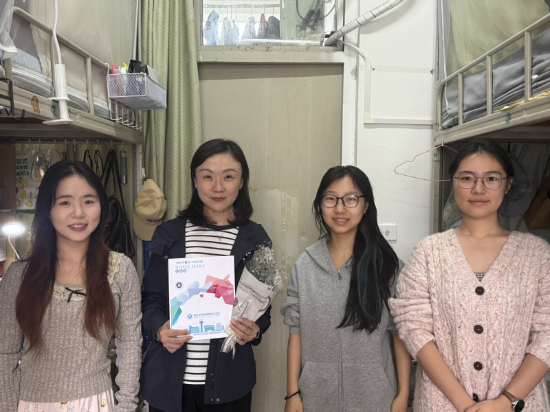 为响应“一站式”学生社区建设提质增效行动,推进领导干部联系宿舍工作,落实“六暖”工程,精准对接学生成长需求,近日,御书屋 开展“荣誉舍长”联系宿舍活动。校团委王艳婷、田盼盼、蒋翔宇、林鸿老师及学工部李友山老师走进学生社区,搭建起温暖的师生“连心桥”。