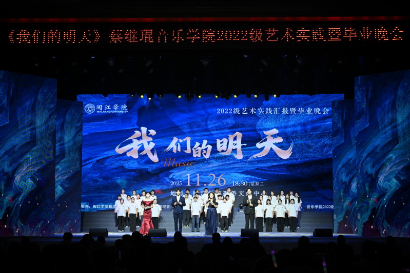 全体2022级音乐学专业学生共同唱响谢幕曲《我们的明天》,熟悉的旋律在融侨文体中心回荡,既是对晚会“我们的明天”主题的完美呼应,也为四年大学时光、这场意义非凡的毕业艺术实践画上了圆满又温暖的句号。
